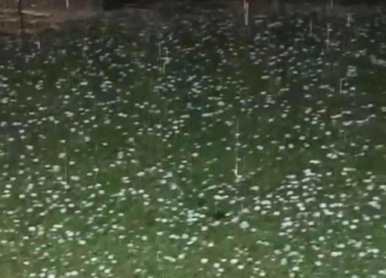 Impressionante tempestade com granizo atinge pequena cidade, que aciona alerta amarelo