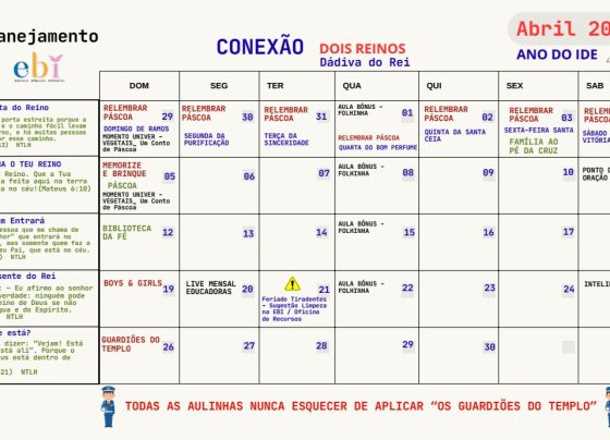 Em 19 de Abril temos Aula Semanal: no Domingo dia 19 de Abril / 2026 Tema: Presente do Rei…