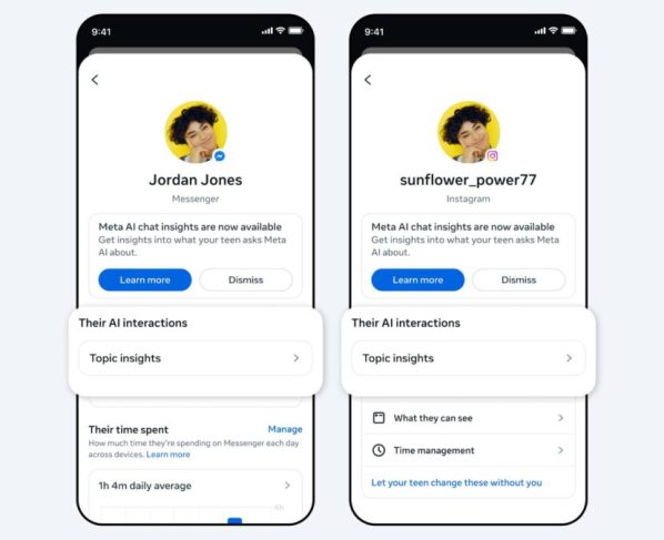 A ferramenta fica disponível na aba “Insights”, nos aplicativos Facebook, Messenger e Instagram, para pais que optam pela supervisão de contas de adolescentes. Na opção “Interações com a IA”, são listados todos os assuntos discutidos nos últimos sete dias, com subtópicos para cada um.