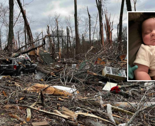 “O telhado saiu primeiro, a ponta do tornado desceu e pegou o berço com nosso bebê”, disse Moore. “Ele foi a primeira coisa a subir.”