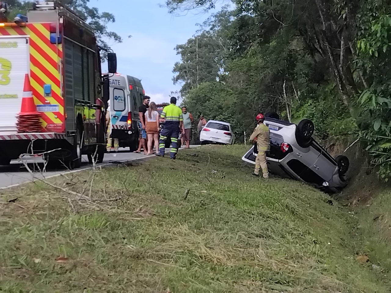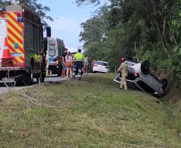 Um capotamento registrado na manhã deste sábado (3) mobilizou equipes de resgate na PR-508, rodovia que liga a BR-277 ao município de Matinhos, no Litoral do Paraná. O acidente envolveu ao menos dois veículos e deixou uma mulher e duas crianças feridas — nenhuma em estado grave.