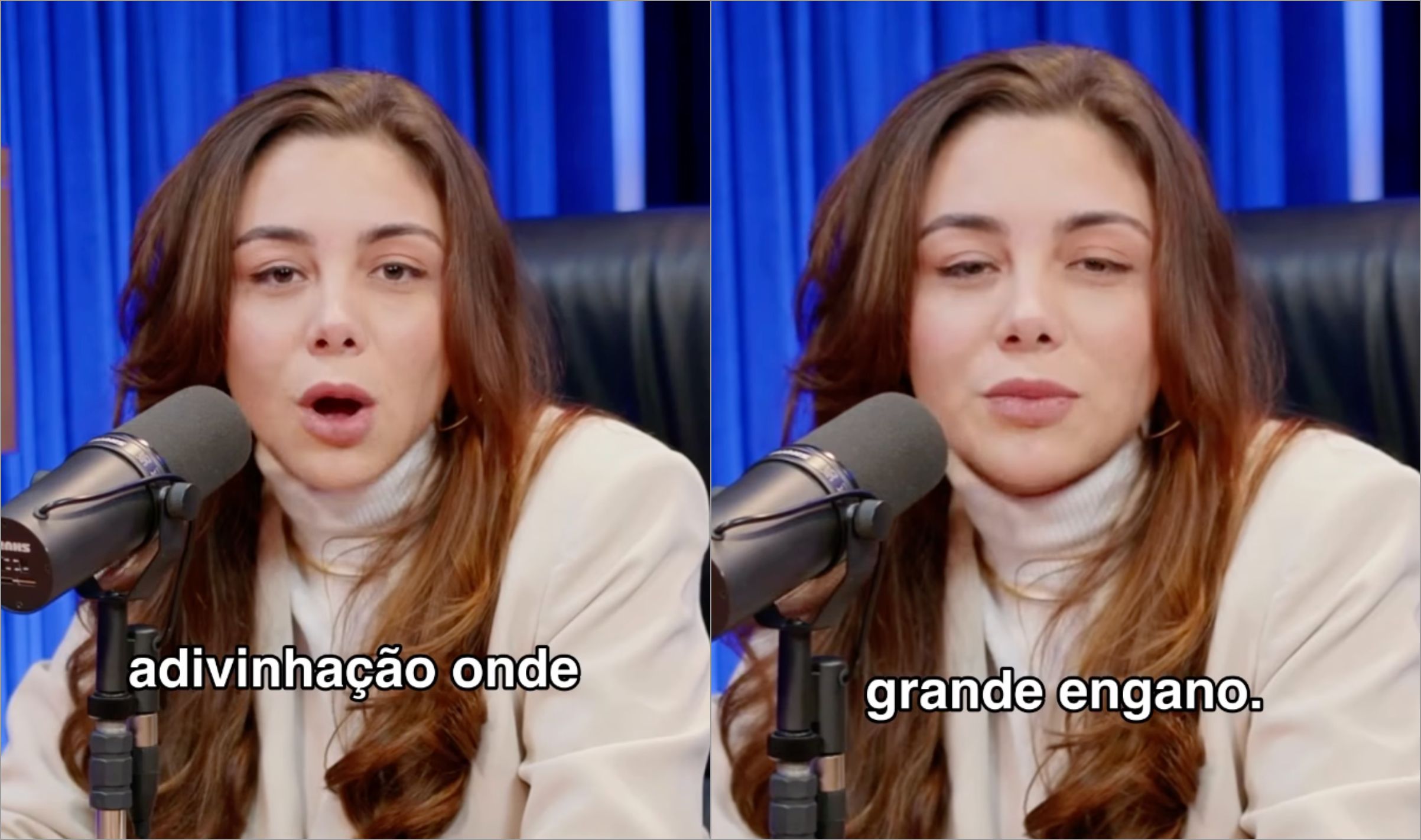Na sequência, ela acrescentou: “Ele me fez perceber o lugar de soberba que eu estava, de achar que em uma sessão eu poderia resolver a vida de alguém e, principalmente, porque há um espírito de adivinhação onde as pessoas vão buscar de forma oculta o que aconteceu no passado da outra através daquele campo energético e tudo mais”.