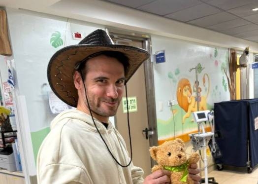 Brian Borenstejn durante visita à ala pediátrica de um hospital em Ashkelon: brinquedos e orações pelas crianças internadas. (Foto: arquivo pessoal)