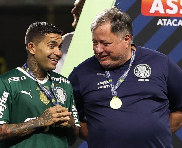 Dudu, mais uma vez. Tenho 24 anos a mais que você, uma vida maior, não tenho a história que você tem no futebol. Não tenho. Não ganhei o que você ganhou, em todos os aspectos. E já tenho meus 56 anos. Vim para cá onde as pessoas sequer acreditaram que conseguiria dar continuidade por eu estar substituindo, na minha modesta opinião, um dos melhores diretores de futebol que existem. O que eu penso, desde que eu sentei aqui, nunca deixei que saísse nada que fosse contra. O que se fala lá fora eu não controlo. Mas daqui, internamente, independente do que tenha acontecido no ano passado. É duro, não é fácil para mim, mas consegui numa linha que eu também entendo que é linha que tem que ser conduzida agora. E eu te citei os exemplos. Te comparei com o que tem de melhor no mundo. Essas decisões sempre foram tomadas, com exceção ao Sergio Ramos, acabou no final saindo arranhada, todas as outras foram tomadas de forma muito bem equilibradas. Eu falei para o André: “Eu não vou competir com quase R$ 120 milhões”. Não vou fazer nada que seja fora do que eu tenho planejado para o clube. É um momento muito duro, muito duro. Mas eu vou acatar e não vou disputar. Vai ter uma hora que você vai pensar: “Porra, o diretor poderia ter endurecido, poderia isso ou aquilo”. Estou sendo honesto com você. Não, nós não fizemos isso. O André pediu para que eu colocasse na sua rescisão… Eu falei: “Vamos fazer”. Se assim é o desejo, e que para muitos vai dar a interpretação: “O Palmeiras facilitou”. Na verdade, o Palmeiras construiu algo para dar a melhor condição de decisão para que ele, que foi o maior de todos aqui. Dudu, a distância da sua planilha para todas as outras planilhas é enorme. O que acontece? Alguns jogadores tiveram aumentos salariais, mas chegaram mais próximos agora. O teu já vem de algum tempo. Quando eu fecho tudo isso…é um respeito e consideração que o clube tem por você. Você é o único jogador que ganha prêmio isolado. Para não dizer que é o único, o Gustavo [Gómez] tem um, acho que pela Libertadores de R$ 400 mil ou R$ 300 mil. Normalmente nunca se paga. Respondendo tudo o que você…tudo o que está dentro do teu coração, o Palmeiras não criou os obstáculos todos para a sua permanência uma vez que o Palmeiras pode, sim, entender que há um respeito muito grande, e foi essa linha que eu achei que era a melhor, para a melhor decisão a ser tomada. Ponto. O resto é hipocrisia. Como você mesmo está dizendo: “Vocês querem que eu fique, mas não fazem nada”. Estou dizendo para você como tudo aconteceu. Que tudo fique muito claro. Fica todo mundo me cobrando. Todos têm um carinho e admiração, você é um ídolo muito grande. Eu também tenho. Isso nem vem ao caso. Mas, no momento de agora, eu e a senhora presidente, entendemos que tínhamos que deixar tudo bem claro. Bem claro. E caso viesse a acontecer qualquer coisa, o Palmeiras iria dizer simplesmente a verdade de tudo. O Palmeiras não vai omitir absolutamente nada e nem vai pedir nada para ninguém. Para mim as verdades das histórias são sempre as melhores para qualquer coisa. É isso.