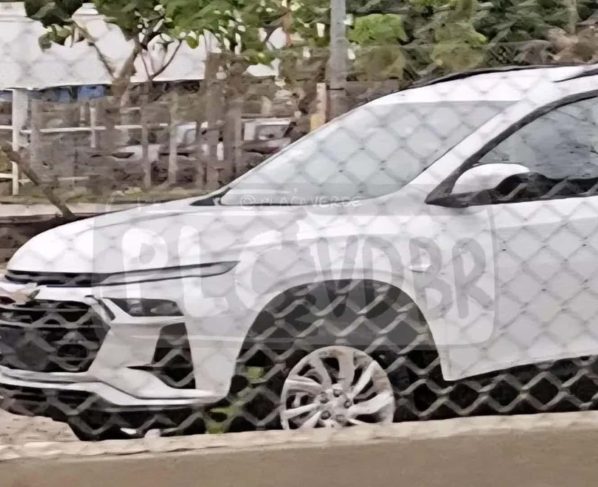 Como adiantamos em projeção de março, o novo Tracker 2026 terá faróis em duas partes, grade dianteira bem destacada e visual mais próximo de outros SUVs da marca, como o Equinox e Blazer. Nas imagens, uma provável versão LT ou LTZ, com rodas de 17″ e pintura em prata, mostrando que a marca quer colocar todas as versões nas lojas assim que lançar a novidades.
