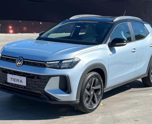 Por dentro, o Tera aposta em um visual inspirado nos elétricos ID. da VW. A central multimídia foi elevada, mas o painel segue um estilo próprio. Ele contará com painel de instrumentos 100% digital e o sistema VW Play Connect, permitindo conectividade total via aplicativo. O modelo também oferecerá carregamento de celular por indução e luz ambiente no meio do tablier.