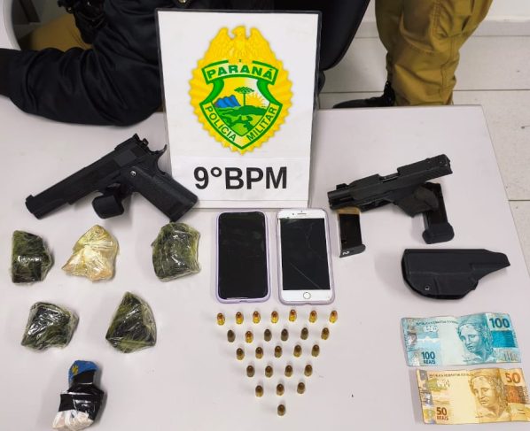 Na tarde de quarta-feira, 2, em Paranaguá, policiais militares prenderam dois homens, sendo que um deles era procurado pela Justiça. Durante a ação, houve a apreensão de uma pistola, além de munições, um simulacro e porções de drogas.