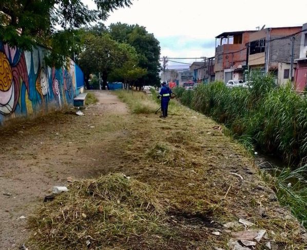 A ação integrada que reuniu as regionais Cidade Satélite, Bonsucesso e Cumbica da Secretaria de Administrações Regionais (SAR), a Prefeitura de Guarulhos iniciou nesta quarta-feira (26) a roçagem do mato alto em mais de 7 mil metros quadrados das margens do córrego Popuca, que fica na avenida Lindomar Gomes de Oliveira, na Cidade Industrial Satélite.