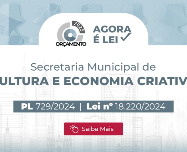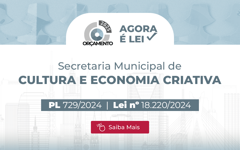 O orçamento da SMC (Secretaria Municipal de Cultura e Economia Criativa) para 2025 é de R$ 848,44 milhões, de acordo com a Lei nº 18.220, de 27 de dezembro de 2024. O montante sancionado pelo Executivo é 6,18% maior do que o valor inicial previsto no PL (Projeto de Lei) 729/2024, que era de R$ R$ 799,05 milhões.