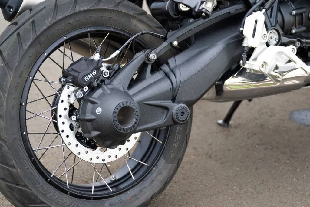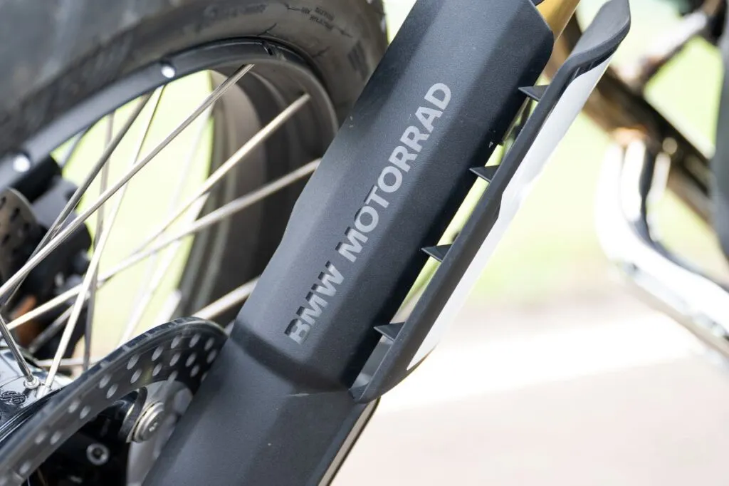 Uma das mudanças técnicas mais significativas da BMW R 12 G/S 2026 é a substituição do tradicional sistema Telelever por um garfo telescópico invertido de 45 mm na dianteira. Na prática, essa alteração devolve à moto o “mergulho” natural nas frenagens, algo que muitos pilotos experientes valorizam para sentir o limite de aderência do pneu dianteiro de 19 polegadas.