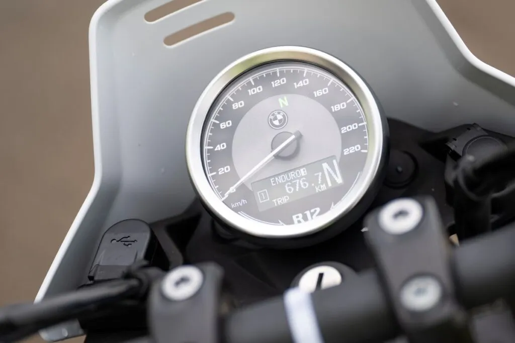 Sentar na BMW R 12 G/S 2026 é um exercício de ergonomia bem pensada. O guidão largo oferece uma alavanca perfeita para manobras rápidas, enquanto a posição das pedaleiras permite que as pernas fiquem em um ângulo relaxado, ideal para longas jornadas. O painel de instrumentos segue a filosofia “menos é mais”, com um mostrador circular clássico que prioriza o velocímetro e as informações essenciais, evitando o excesso de telas que costuma distrair o piloto em modelos mais tecnológicos.