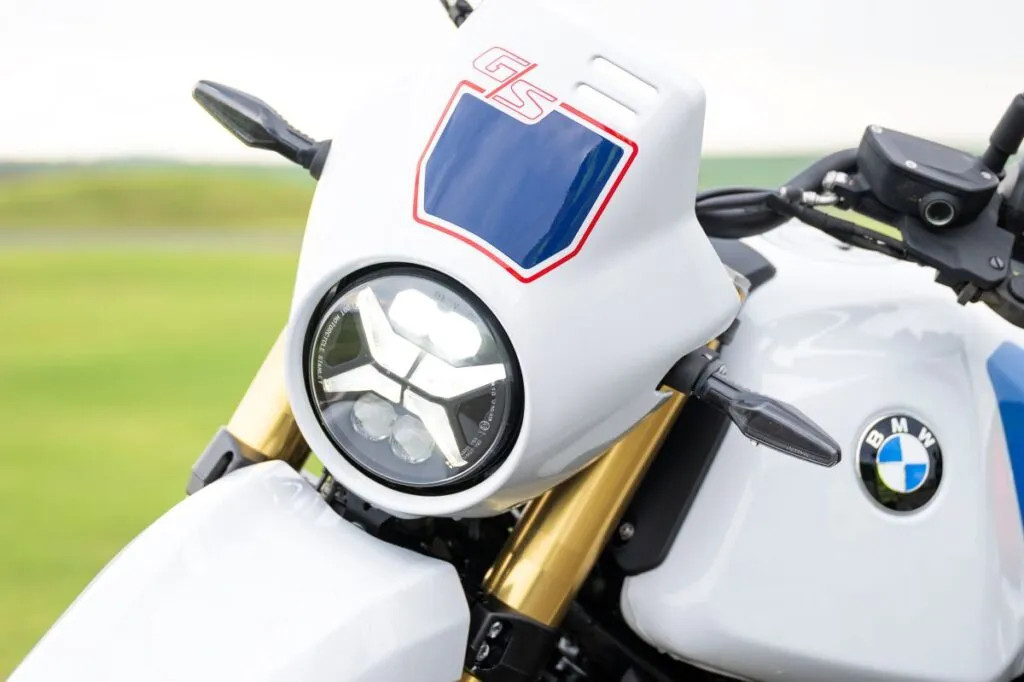 O impacto visual da BMW R 12 G/S 2026 é de um minimalismo sofisticado que foge das linhas robóticas da sua irmã maior. O tanque de alumínio de 14 litros é o centro das atenções, com vincos que remetem diretamente às clássicas GS da década de 90, mas com um acabamento que denota a qualidade premium de 2026.