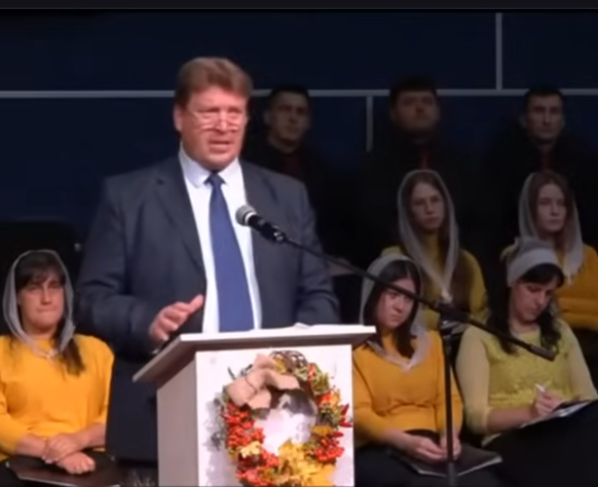 Pastor Nikolay Romanyuk pregando em sua igreja. (Foto: Reprodução/YouTube/ПУТЬ КО СПАСЕНИЮ Boynetskiy).