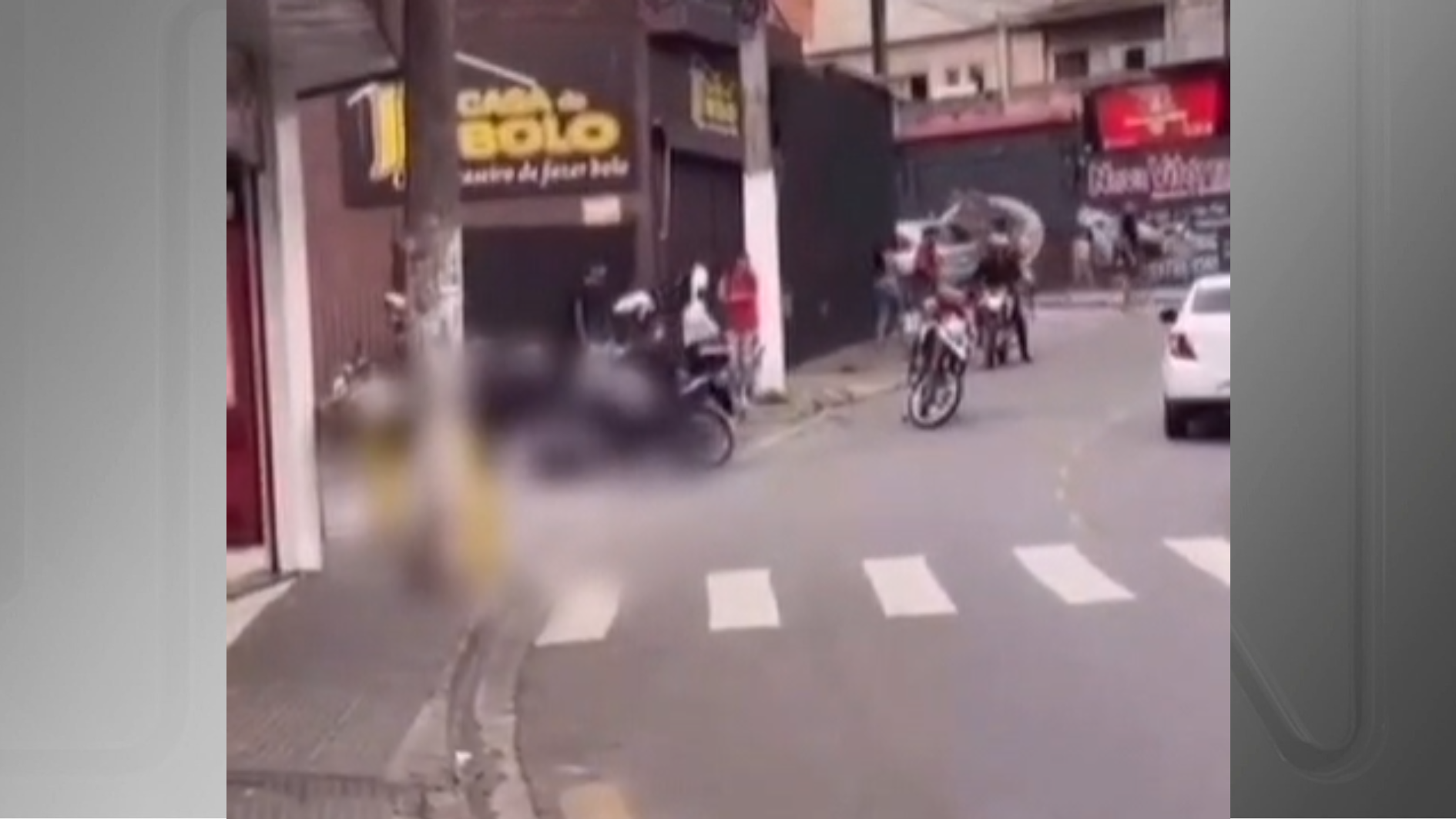 Logo depois, três policiais da Ronda Ostensiva com Apoio de Motocicletas (Rocam) chegam ao local e arrastam o homem com o pé.